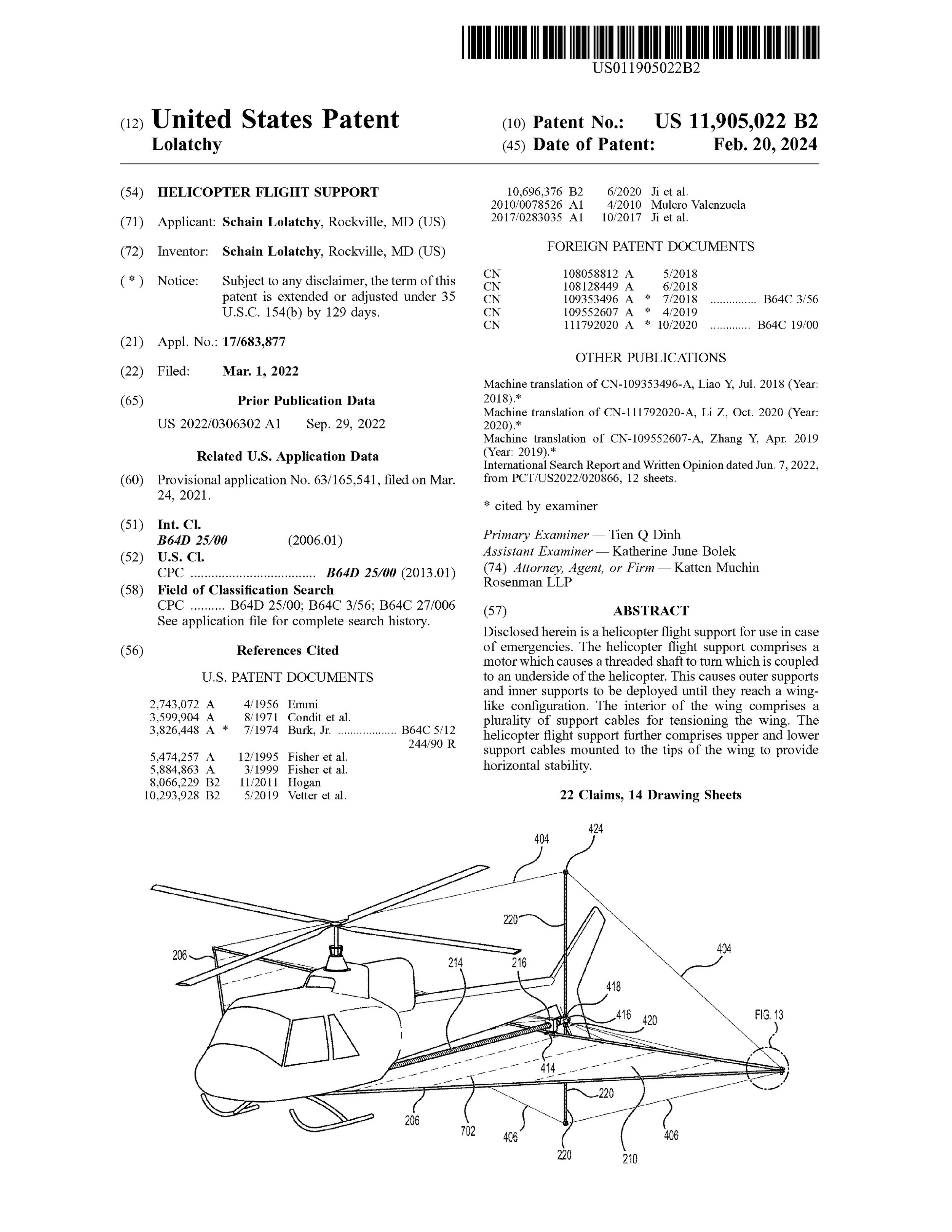 His work culminated in an underside-mounted helicopter flight support concept refined through years of iterative prototyping. The design evolved into a self-contained, self-sufficient system engineered to operate independently from the aircraft’s primary build. The system is minimalist, part-efficient, and mechanically driven through linear threaded actuation and synchronized pivoting support arms that expand into a unified fabric wing structure.