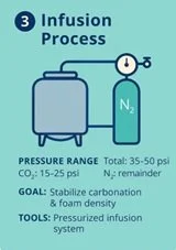 The gas ratio can be tuned based on varietal, desired foam density, and target consumer experience (e.g., “draft latte” texture vs. champagne crispness).
