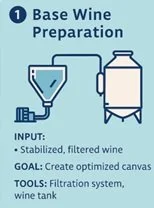 Input: Stabilized, filtered wine—typically white or rosé, selected for balance and clarity