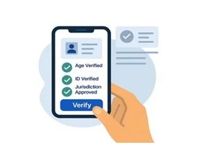 System checks age, ID, and jurisdictional legality.